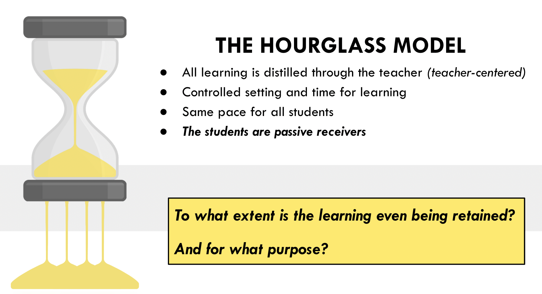 First, there is The Hourglass Model, the age-old approach used in schools and classrooms around the world.